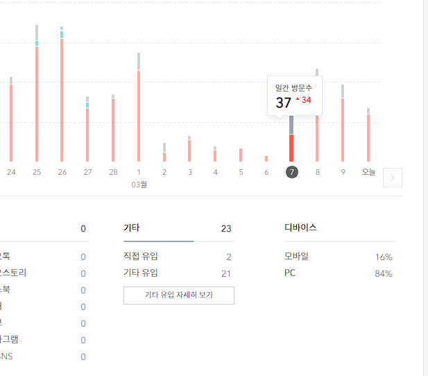 다음날 '기타유입'으로 방문수가 늘어있는 것을 볼 수 있다.