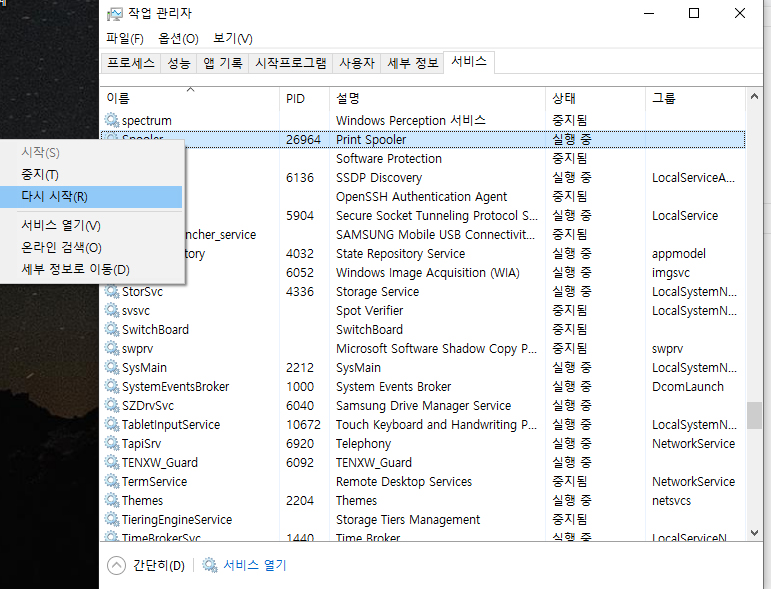 네, 있습니다. 바로 [스풀러 spooler] 재부팅입니다.